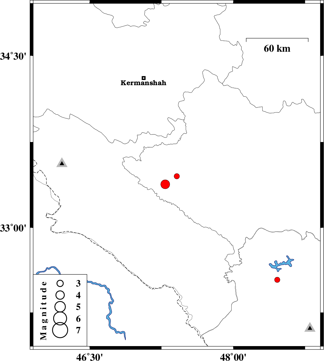 | 2010/02/11 | 16:29:42.4 | 19:59:42.4 | 33.38 | 47.29 | 15 | ML:4.3 | 28 km North of Darreh Shahr, Ilam Province |
