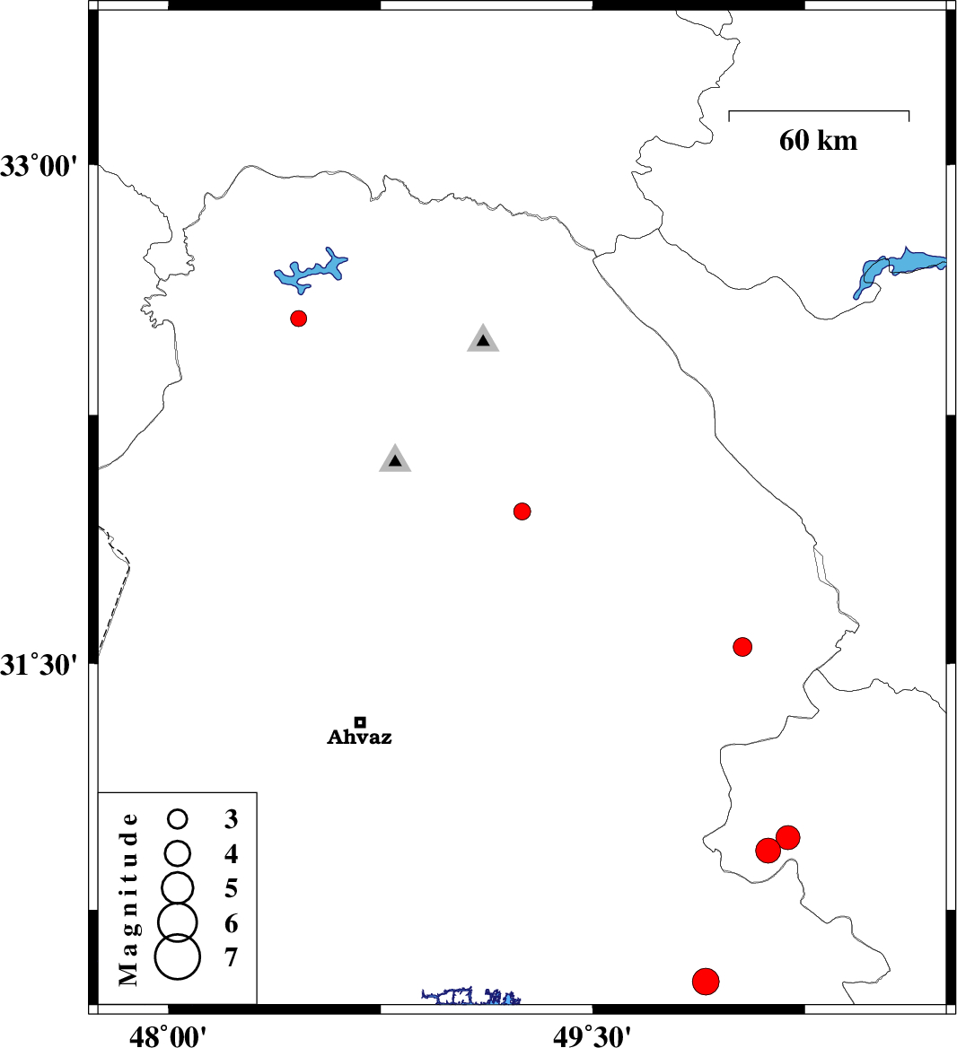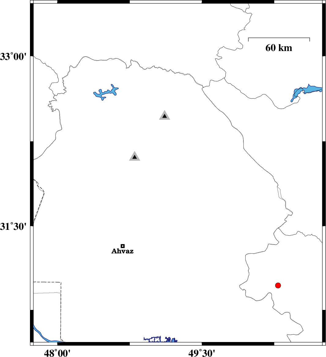 | 2010/02/12 | 08:29:17.1 | 11:59:17.1 | 30.53 | 49.9 | 42 | ML:4.2 | 32 km South-East of Omidiyeh, Khoozestan Province | ||