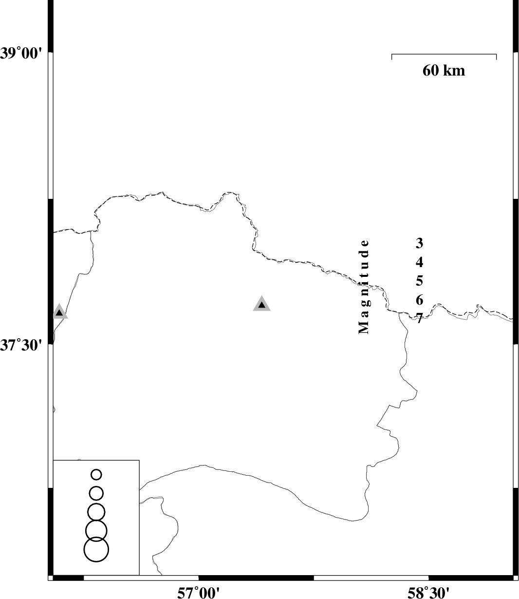| 2010/02/14 | 02:19:42.0 | 05:49:42.0 | 37.79 | 57.55 | 6 | ML:2.7 | 39 km North-East of Bojnurd, Khorasan(north) Province |