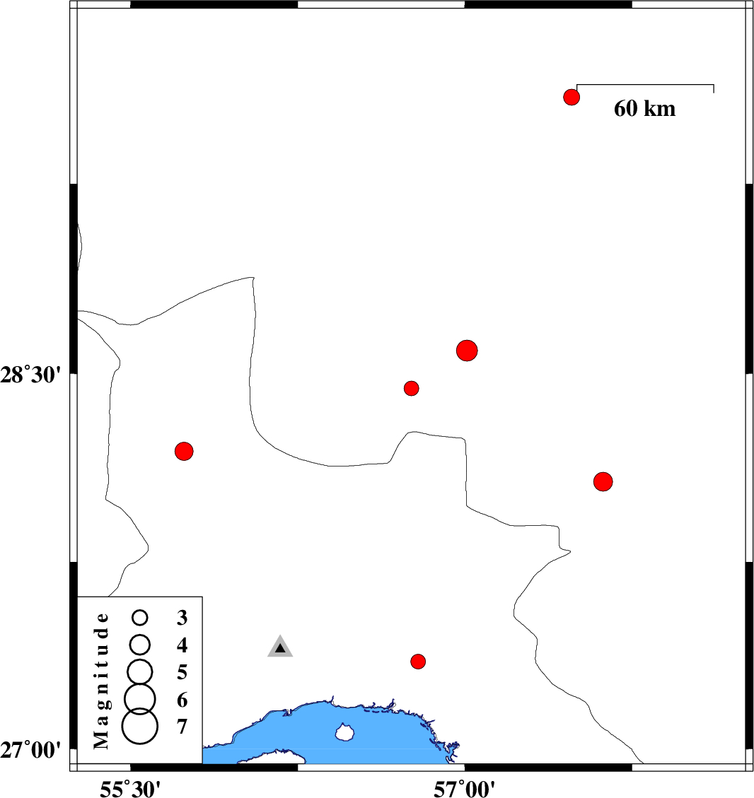 | 2010/02/16 | 16:33:15.4 | 20:03:15.4 | 28.44 | 56.76 | 6 | ML:2.9 | 84 km North-East of Hajiabad, Hormozgan Province | ||