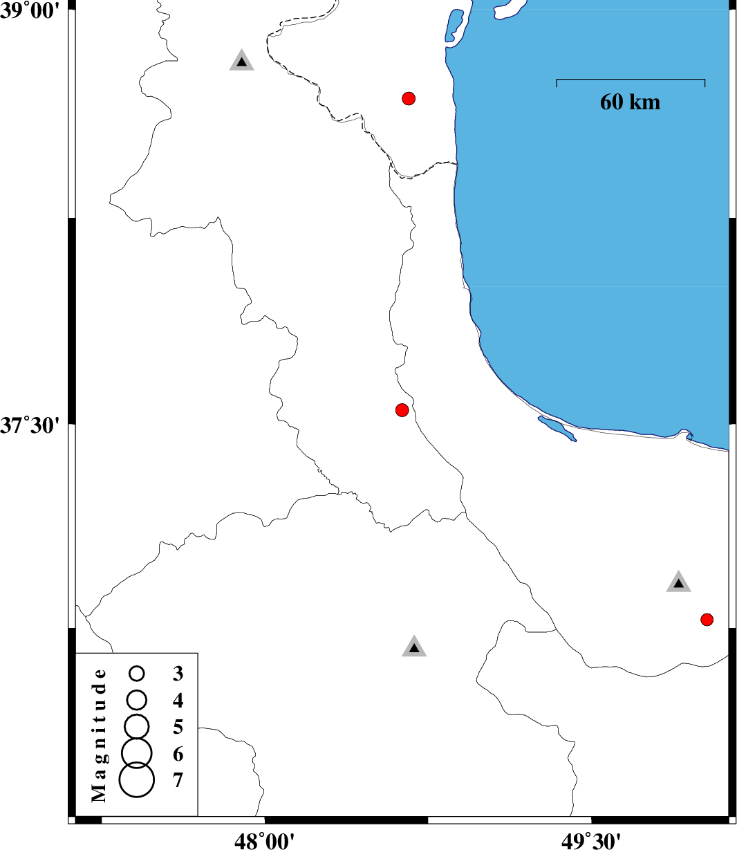 | 2010/02/06 | 18:00:18.4 | 21:30:18.4 | 38.68 | 48.66 | 14 | ML:2.7 | 32 km North-East of Namin, Ardebil Province |