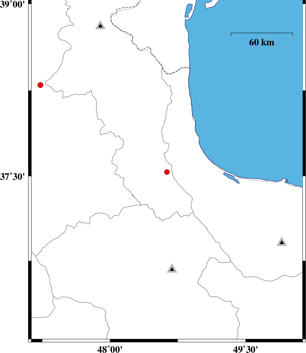 | 2010/02/06 | 18:17:33.8 | 21:47:33.8 | 36.78 | 50.03 | 14 | ML:2.6 | 36 km South-West of Amlash, Gilan Province | ||