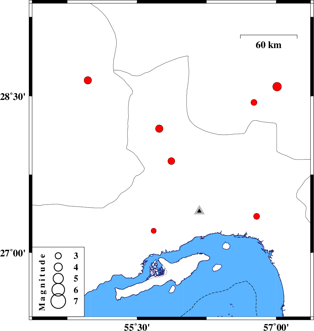 | 2010/02/23 | 02:42:45.8 | 06:12:45.8 | 27.88 | 55.87 | 15 | ML:3.4 | Hormozgan Province, 48 km South of Hajiabad | ||