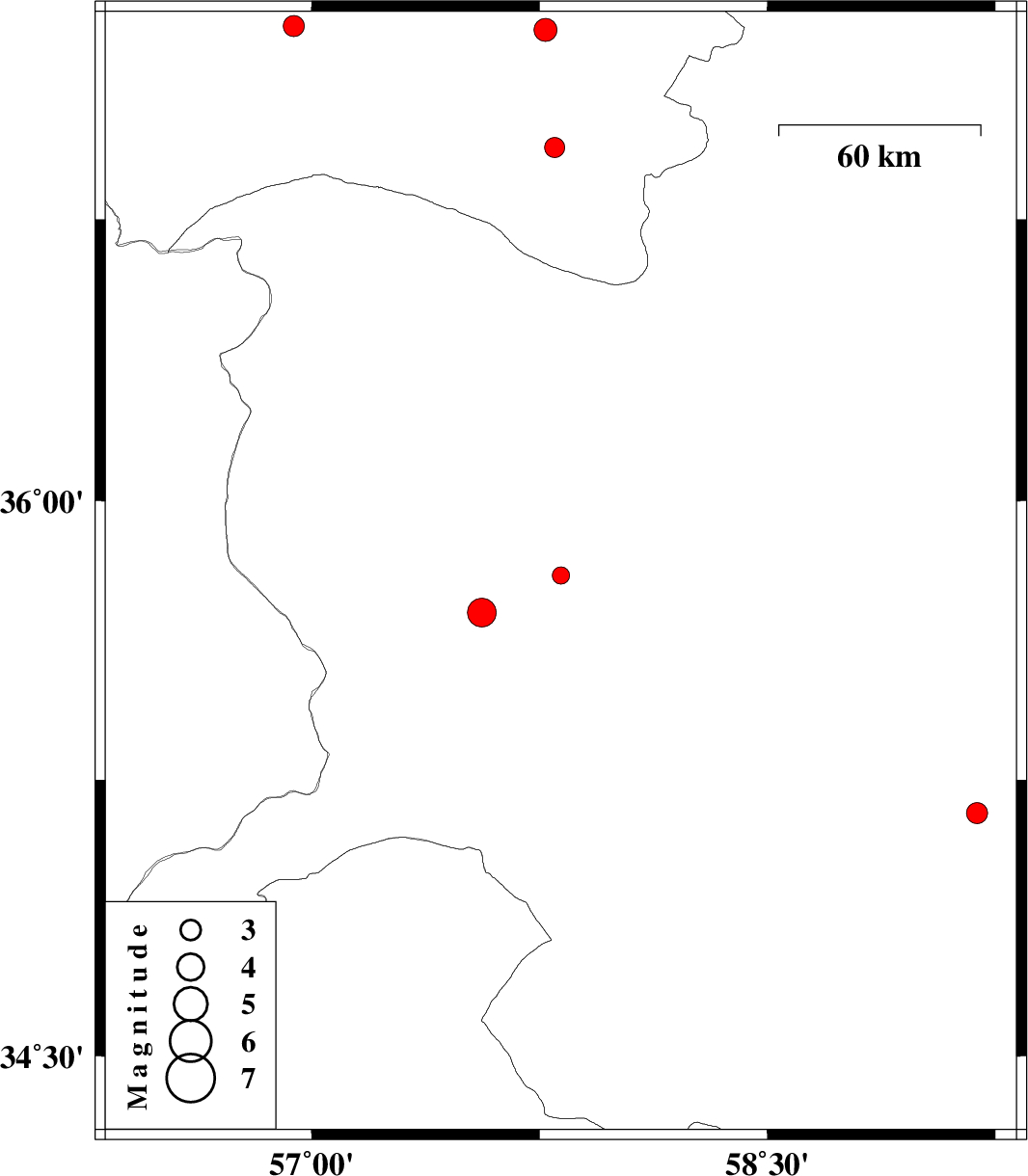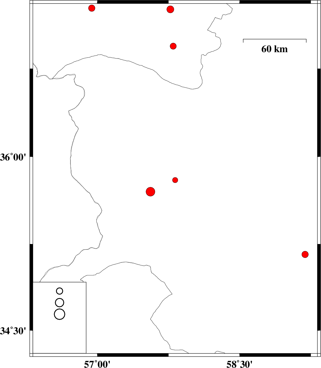 | 2010/02/25 | 19:35:55.6 | 23:05:55.6 | 35.8 | 57.82 | 15 | ML:2.5 | Khorasan(center) Province, 47 km South-East of Sabzevar | ||