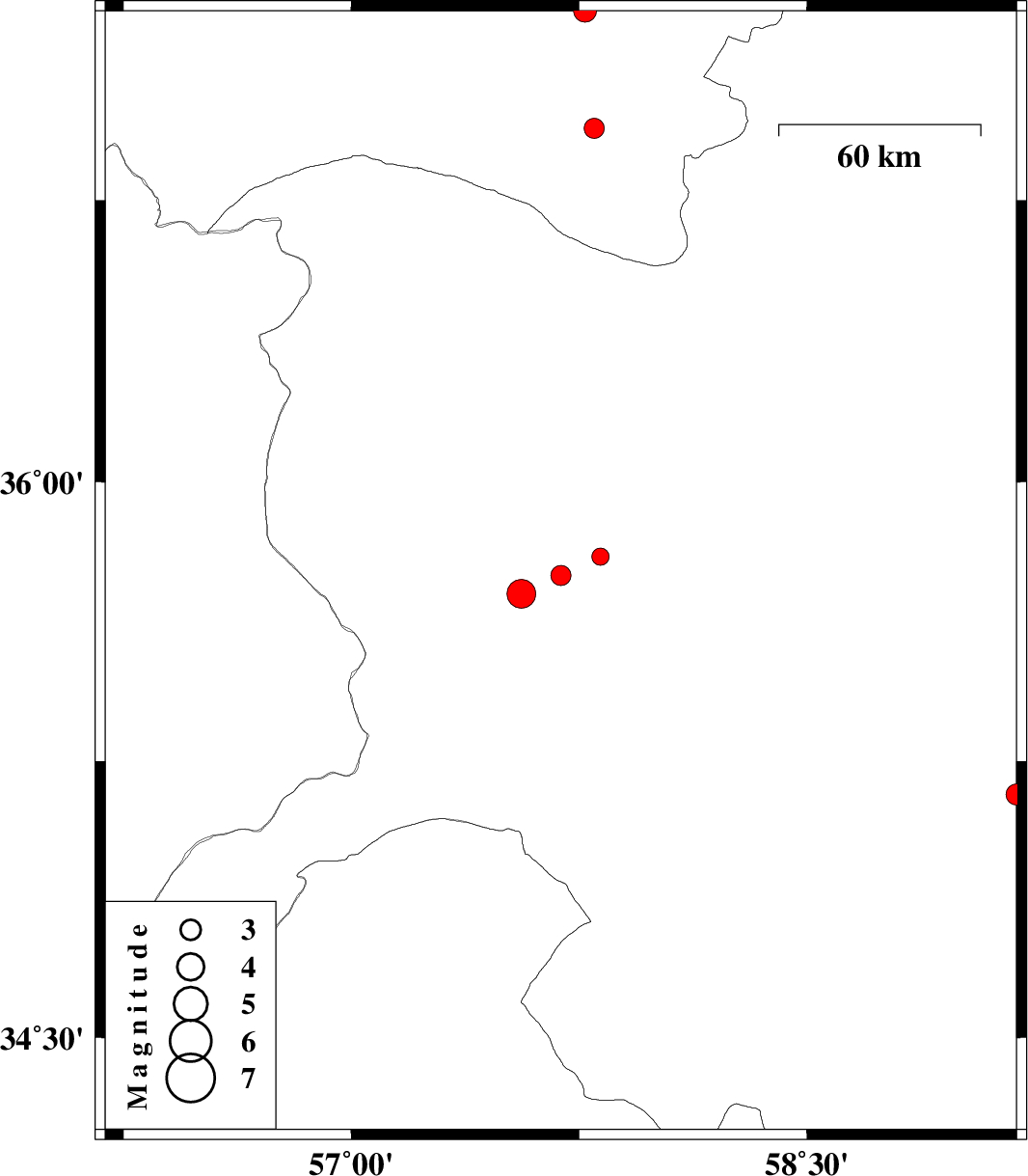 | 2010/02/28 | 10:17:57.9 | 13:47:57.9 | 35.75 | 57.69 | 44 | ML:3 | Khorasan(center) Province, 52 km South of Sabzevar | ||
