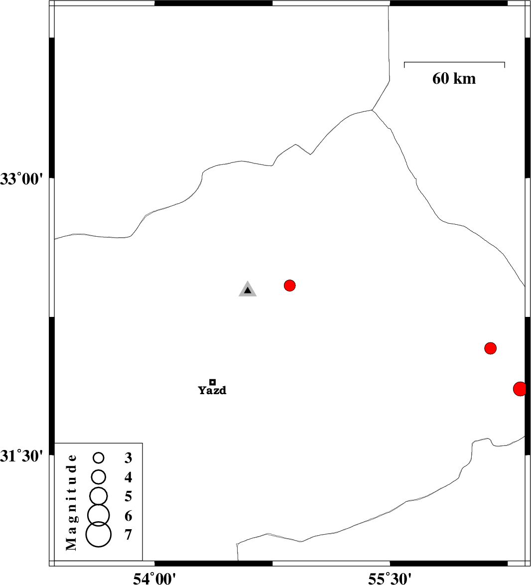 | 2010/02/25 | 04:34:49.3 | 08:04:49.3 | 32.08 | 56.14 | 14 | ML:3.4 | Yazd Province, 88 km North-East of Bafq | ||