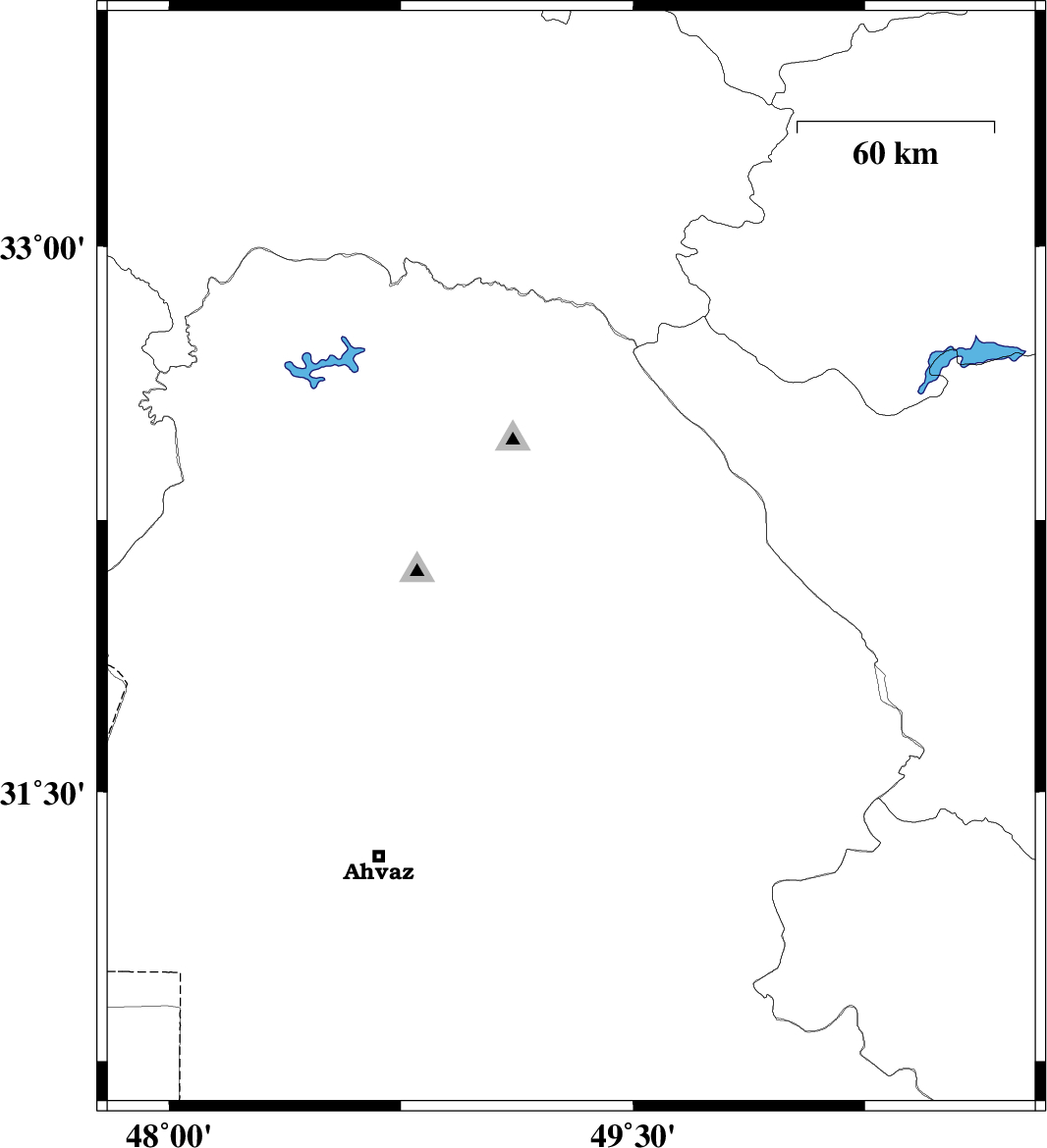 2010/02/23 | 19:23:24.5 | 22:53:24.5 | 32.58 | 48.46 | 41 | ML:2.5 | Khoozestan Province, 16 km North-East of Andimeshk | ||