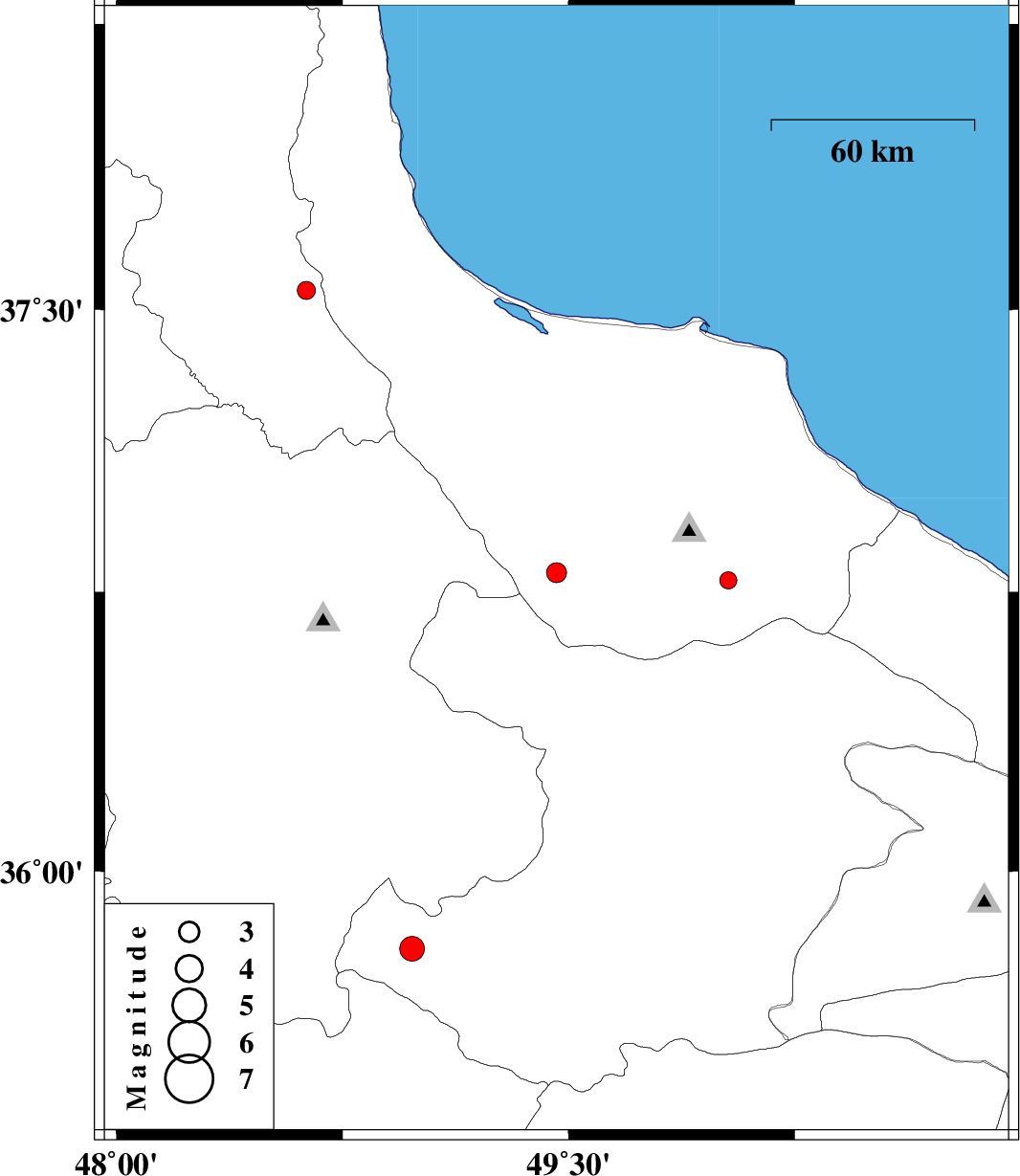 | 2010/02/06 | 18:17:33.8 | 21:47:33.8 | 36.78 | 50.03 | 14 | ML:2.6 | 36 km South-West of Amlash, Gilan Province |