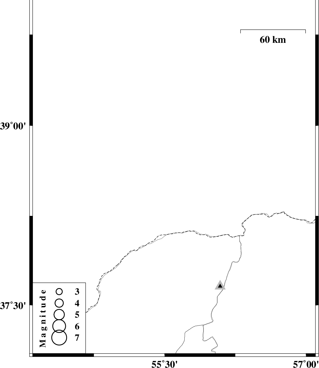 | 2010/03/19 | 01:52:06.2 | 05:22:06.2 | 38.59 | 55.6 | 15 | ML:4.2 | Turkmenistan |