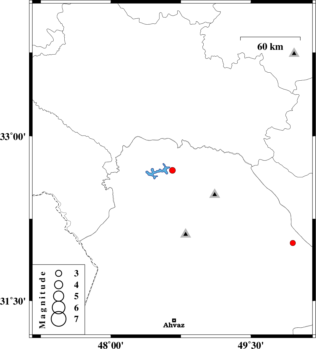 | 2010/03/20 | 06:14:20.0 | 09:44:20.0 | 32.69 | 48.66 | 14 | ML:2.9 | Khoozestan Province, 38 km North-East of Andimeshk |