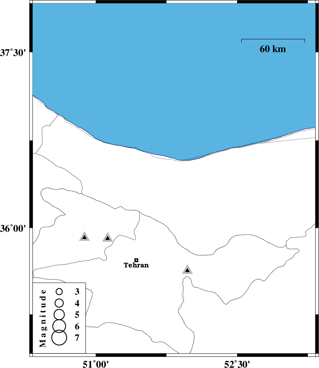 | 2010/03/20 | 07:58:46.1 | 11:28:46.1 | 36.41 | 51.83 | 18 | ML:2.6 | Mazandaran Province, 26 km South-West of Nur |
