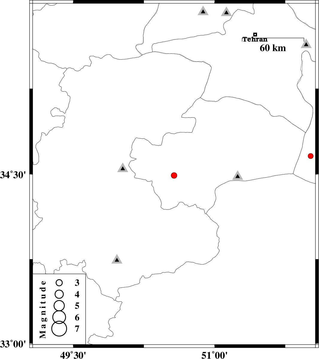 | 2010/02/24 | 04:54:51.8 | 08:24:51.8 | 34.66 | 52.02 | 43 | ML:2.6 | Semnan Province, 69 km South-West of Garmsar | ||