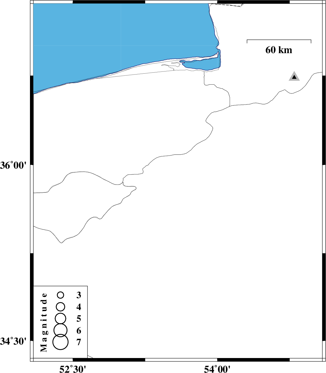| 2010/03/26 | 22:33:30.5 | 03:03:30.5 | 35.85 | 53.59 | 46 | ML:2.7 | Semnan Province, 36 km North-East of Semnan |