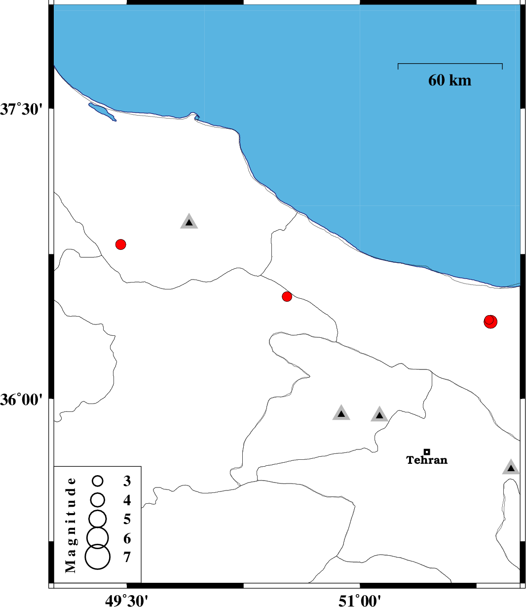 | 2010/03/09 | 03:22:14.6 | 06:52:14.6 | 36.4 | 51.84 | 6 | ML:3.8 | Mazandaran Province, 26 km South-West of Nur | ||