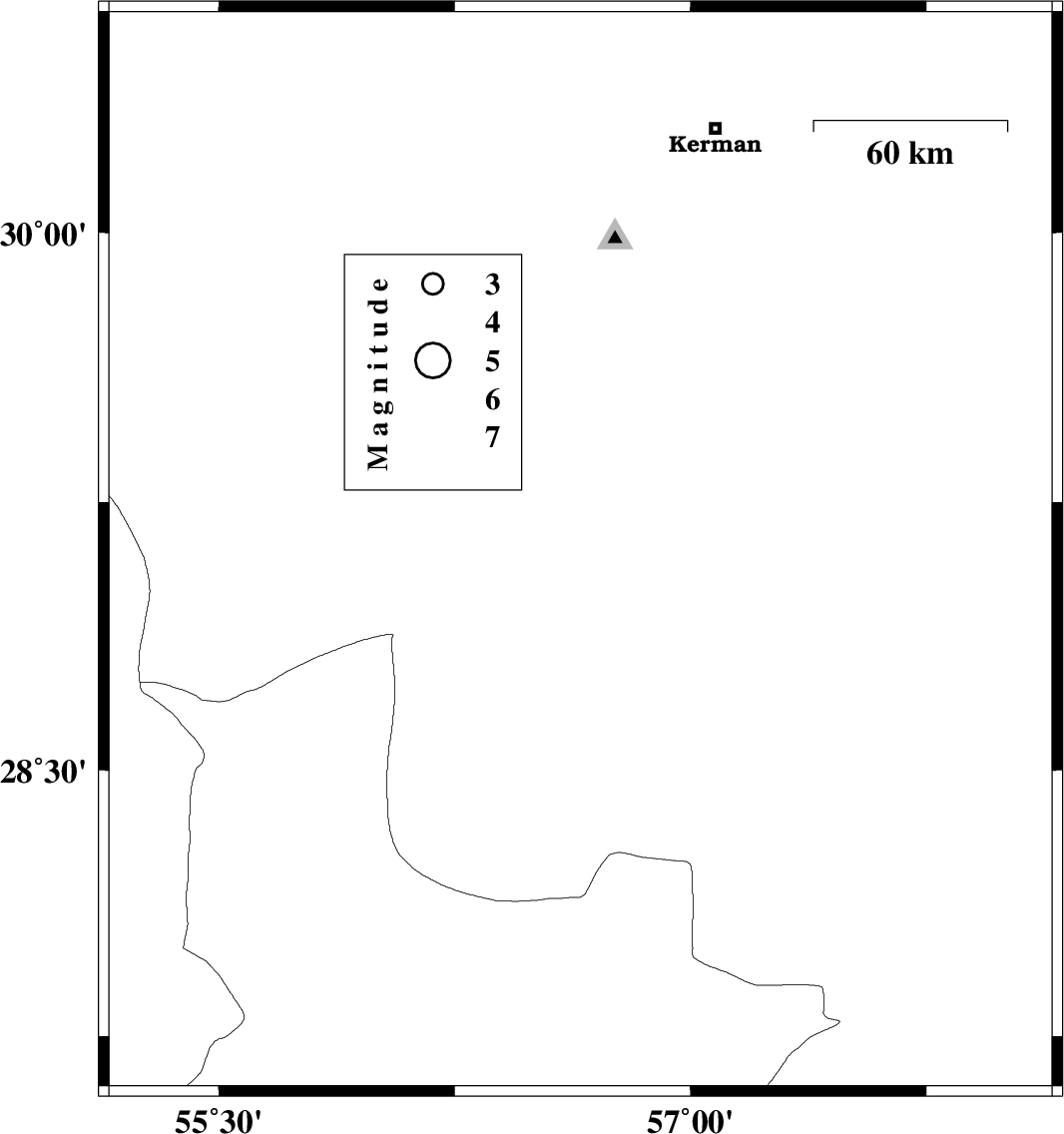 | 2010/03/08 | 16:39:35.2 | 20:09:35.2 | 30.3 | 57.7 | 14 | ML:3.8 | Kerman Province, 60 km East of Kerman | ||