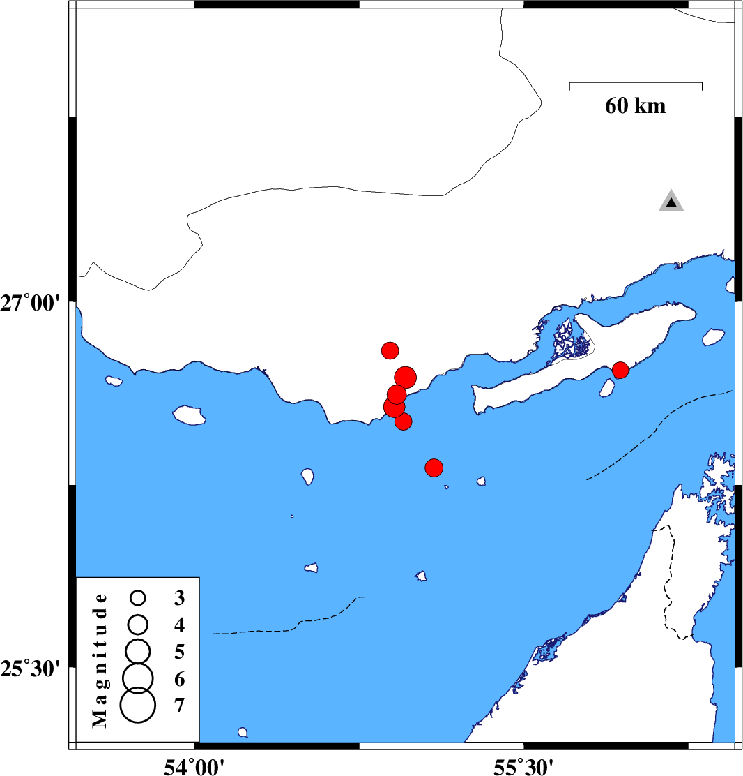 2008/10/21 13:17:21.9 16:47:21.9 26.854.8914 ML:3.5 30 km North of Bandar-e lengeh, Hormozgan Province