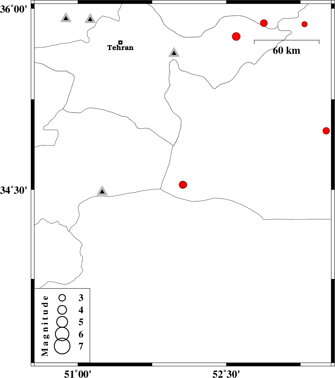 | 2009/06/08 | 00:05:37.2 | 04:35:37.2 | 35.88 | 52.88 | 14 | ML:3.2 | 18 km North-East of Firuzkuh, Tehran Province |
