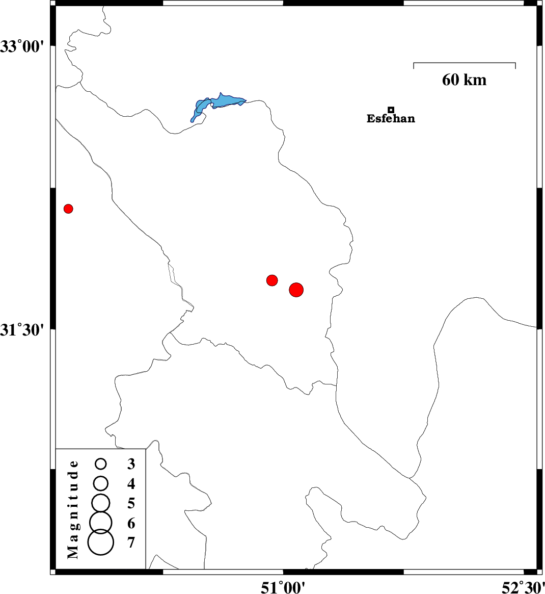 | 2009/07/08 | 14:44:50.9 | 19:14:50.9 | 31.71 | 51.08 | 41 | ML:3.9 | Chaharmahal Bakhtiari Province, 35 km South-West of Borujen | ||