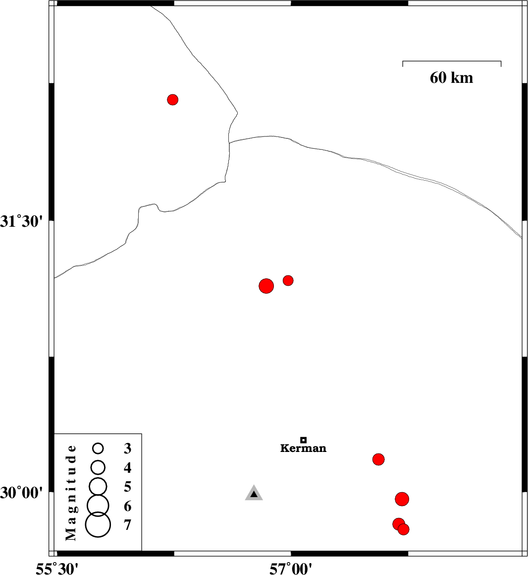 | 2009/06/11 | 12:38:20.7 | 17:08:20.7 | 29.82 | 57.69 | 14 | ML:3.5 | 78 km South-East of Kerman, Kerman Province |
