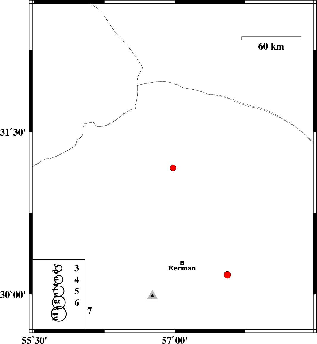 | 2009/07/06 | 12:01:27.0 | 16:31:27.0 | 30.18 | 57.56 | 15 | ML:3.4 | Kerman Province, 48 km South-East of Kerman |
