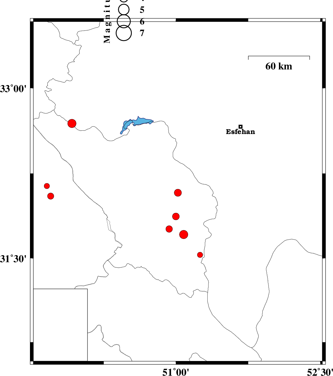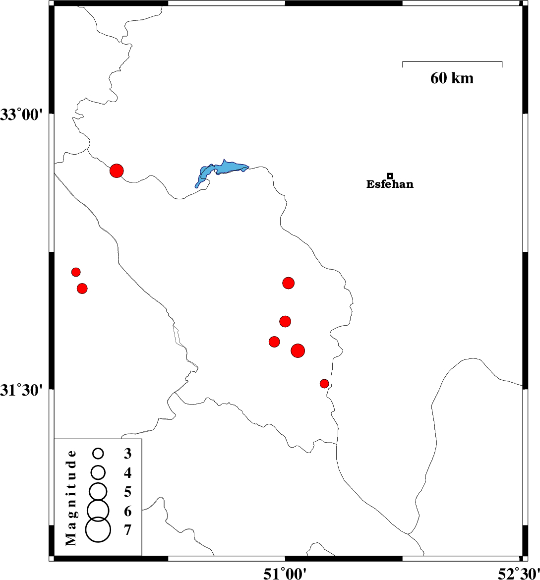 | 2009/07/10 | 04:05:12.4 | 08:35:12.4 | 32.69 | 49.92 | 14 | ML:4 | Esfahan Province, 31 km North-West of Chelgard | ||