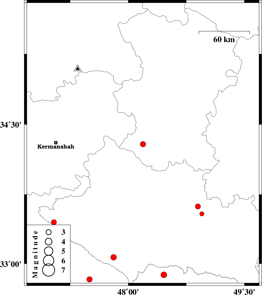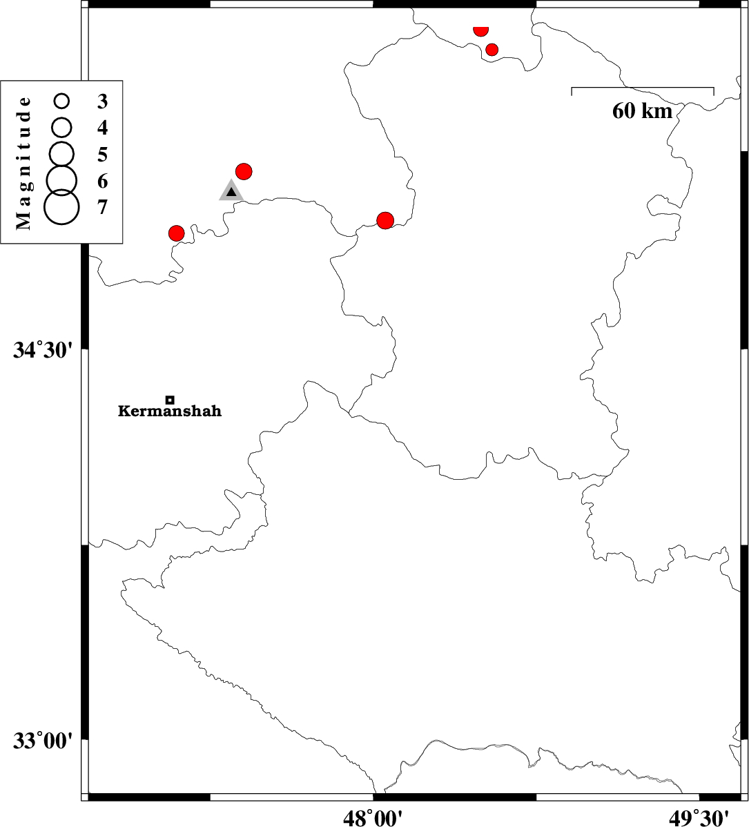 | 2009/06/29 | 08:48:19.1 | 13:18:19.1 | 32.83 | 47.5 | 15 | ML:3.2 | 12 km South of Abdanan, Ilam Province | ||