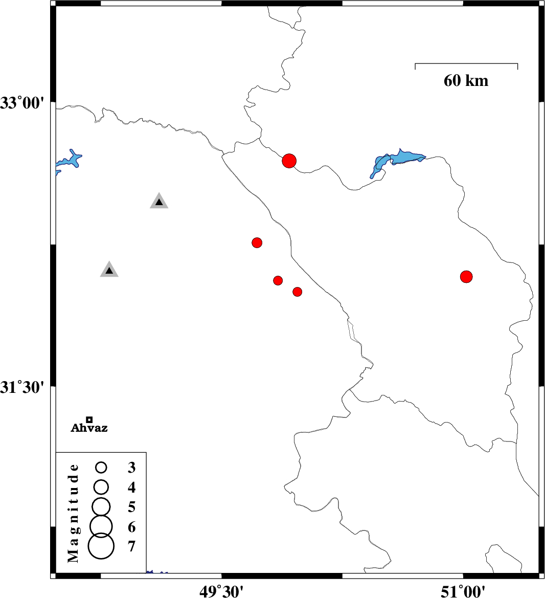 | 2009/07/16 | 21:25:33.1 | 01:55:33.1 | 32 | 49.97 | 18 | ML:2.5 | Khoozestan Province, 20 km North of Izeh | ||