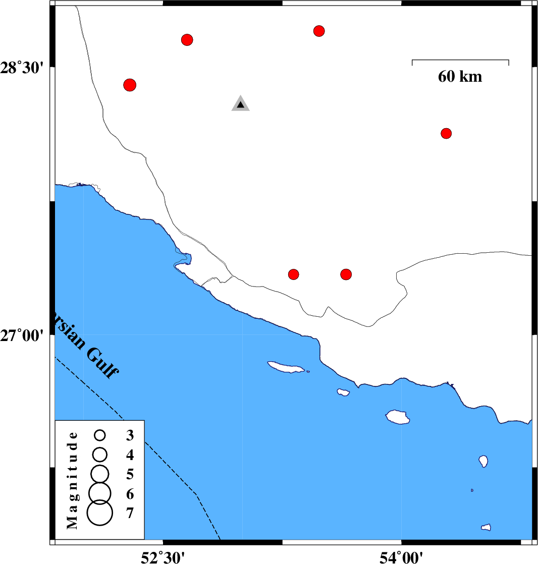 | 2009/07/21 | 01:49:07.8 | 06:19:07.8 | 27.34 | 53.32 | 37 | ML:2.9 | Fars Province, 15 km East of Lamerd | ||