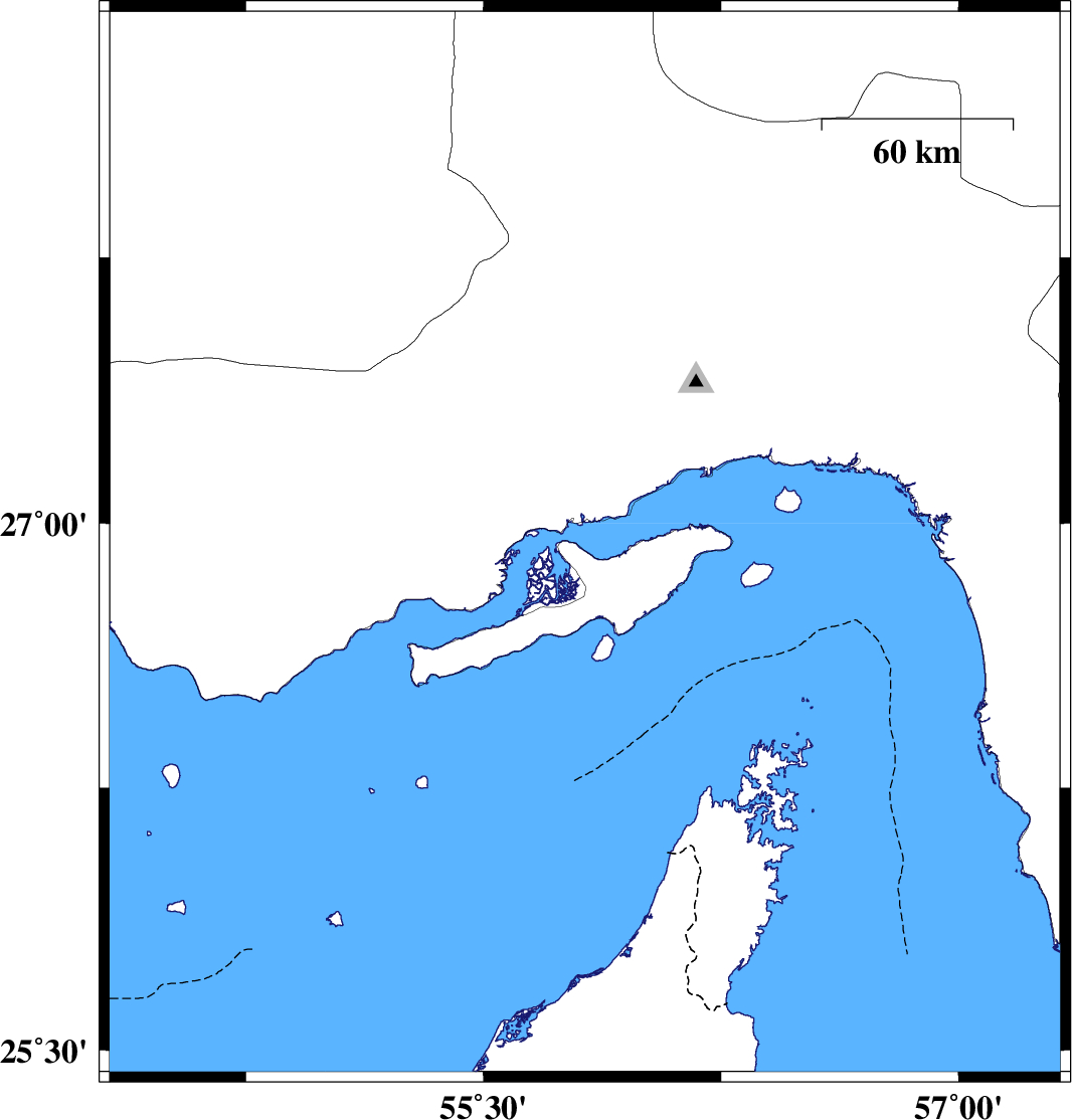 2009/07/22 05:20:49.8 09:50:49.8 26.5455.757 ML:3 Persian Gulf, 90 km East of Bandar-e lengeh