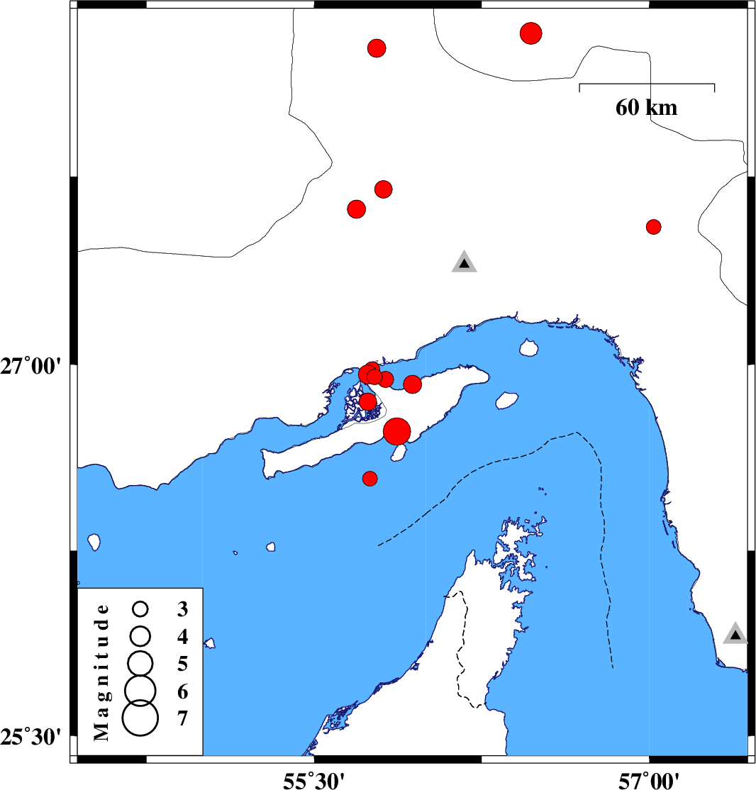 2009/07/22 05:20:49.8 09:50:49.8 26.5455.757 ML:3 Persian Gulf, 90 km East of Bandar-e lengeh