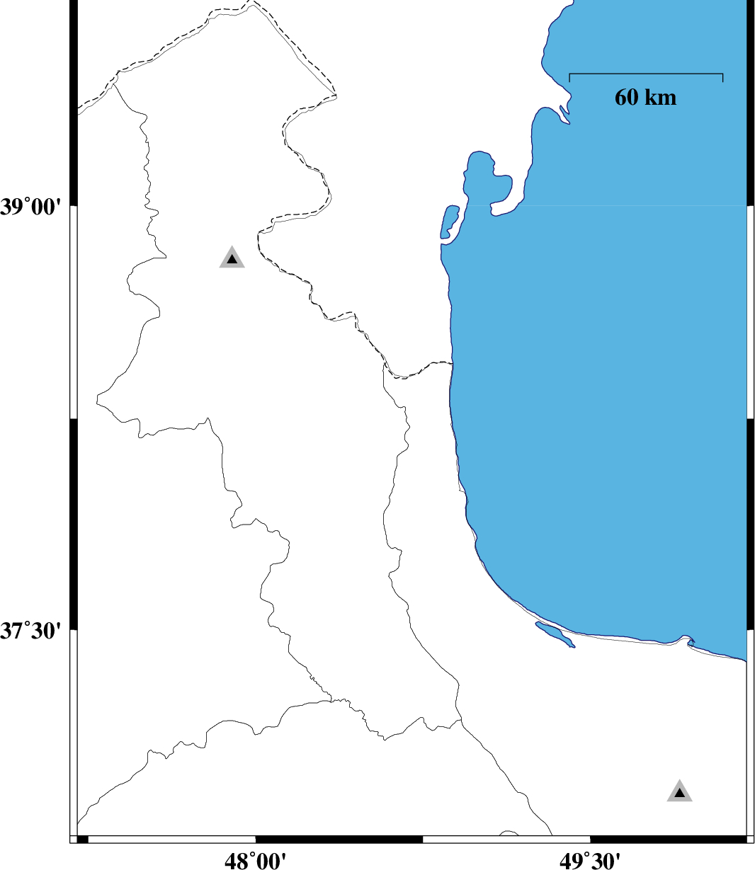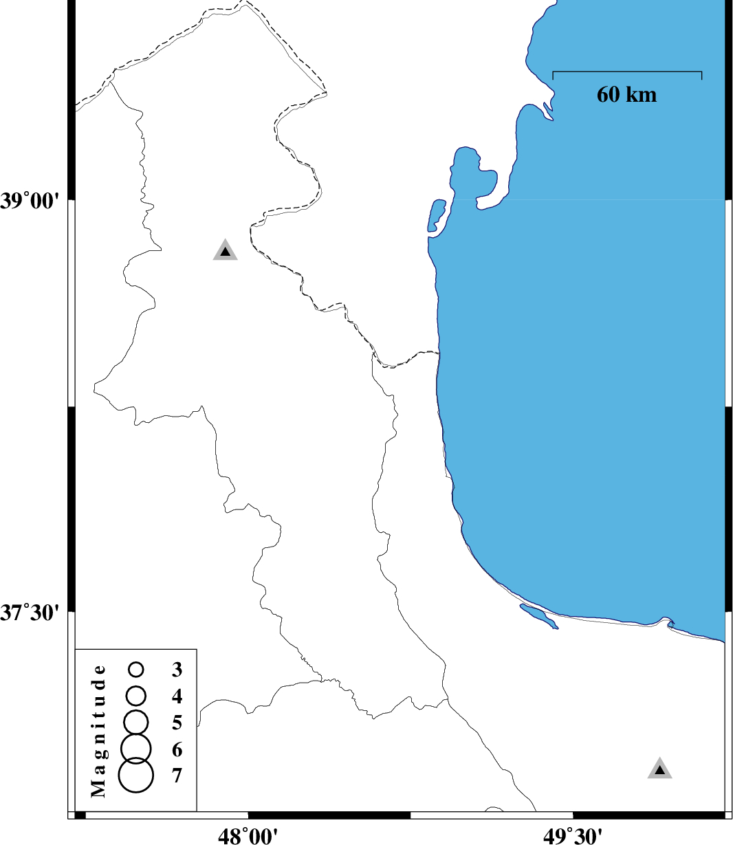 | 2009/07/23 | 05:45:46.6 | 10:15:46.6 | 38.26 | 48.7 | 14 | ML:2.8 | Gilan Province, 23 km South-West of Astara |