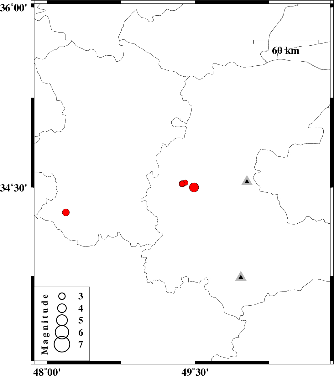 | 2009/07/11 | 17:48:26.2 | 22:18:26.2 | 34.29 | 48.19 | 15 | ML:3.2 | Hamedan Province, 19 km North-West of Nahavand |