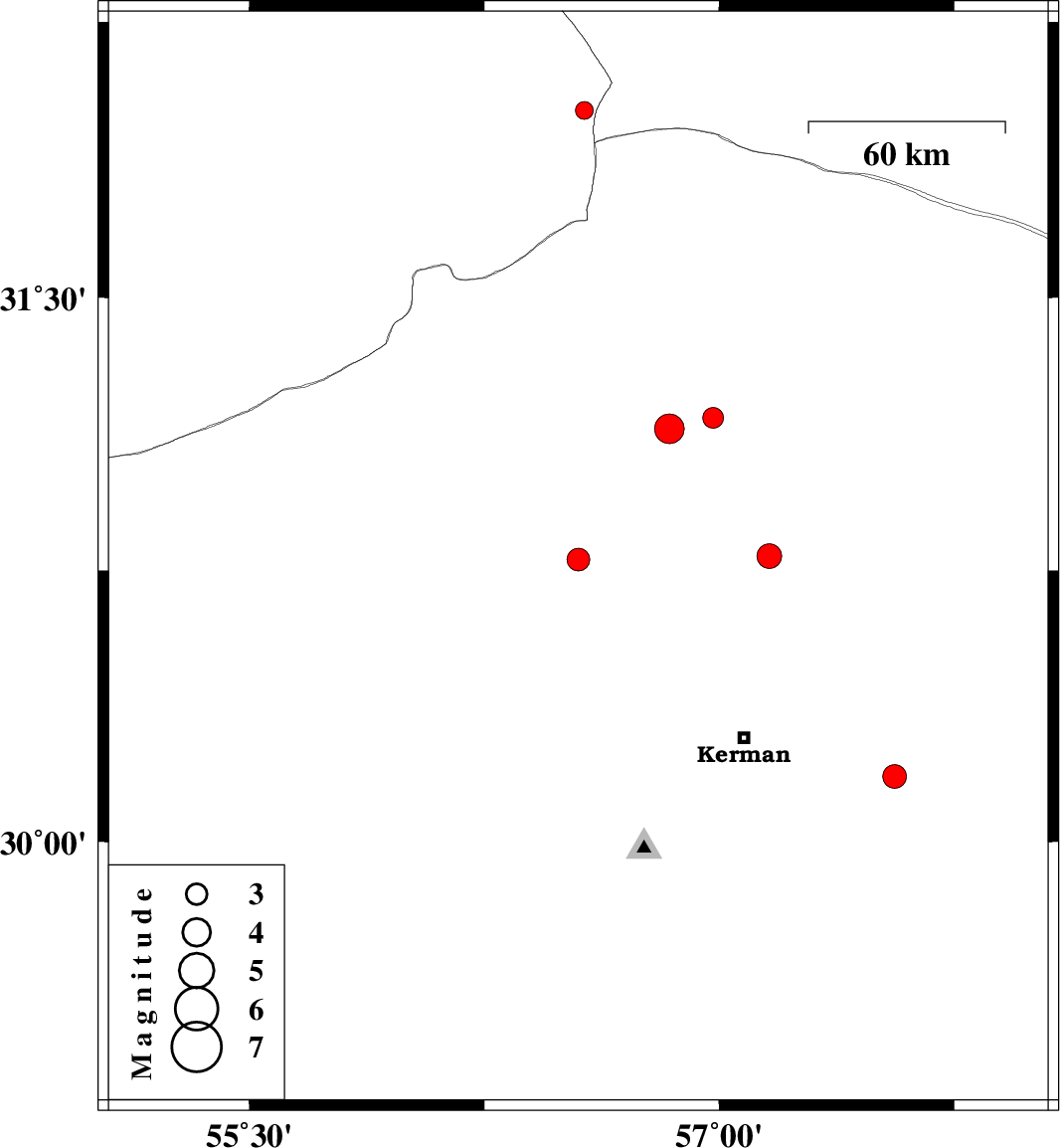 | 2009/07/06 | 12:01:27.0 | 16:31:27.0 | 30.18 | 57.56 | 15 | ML:3.4 | Kerman Province, 48 km South-East of Kerman | ||