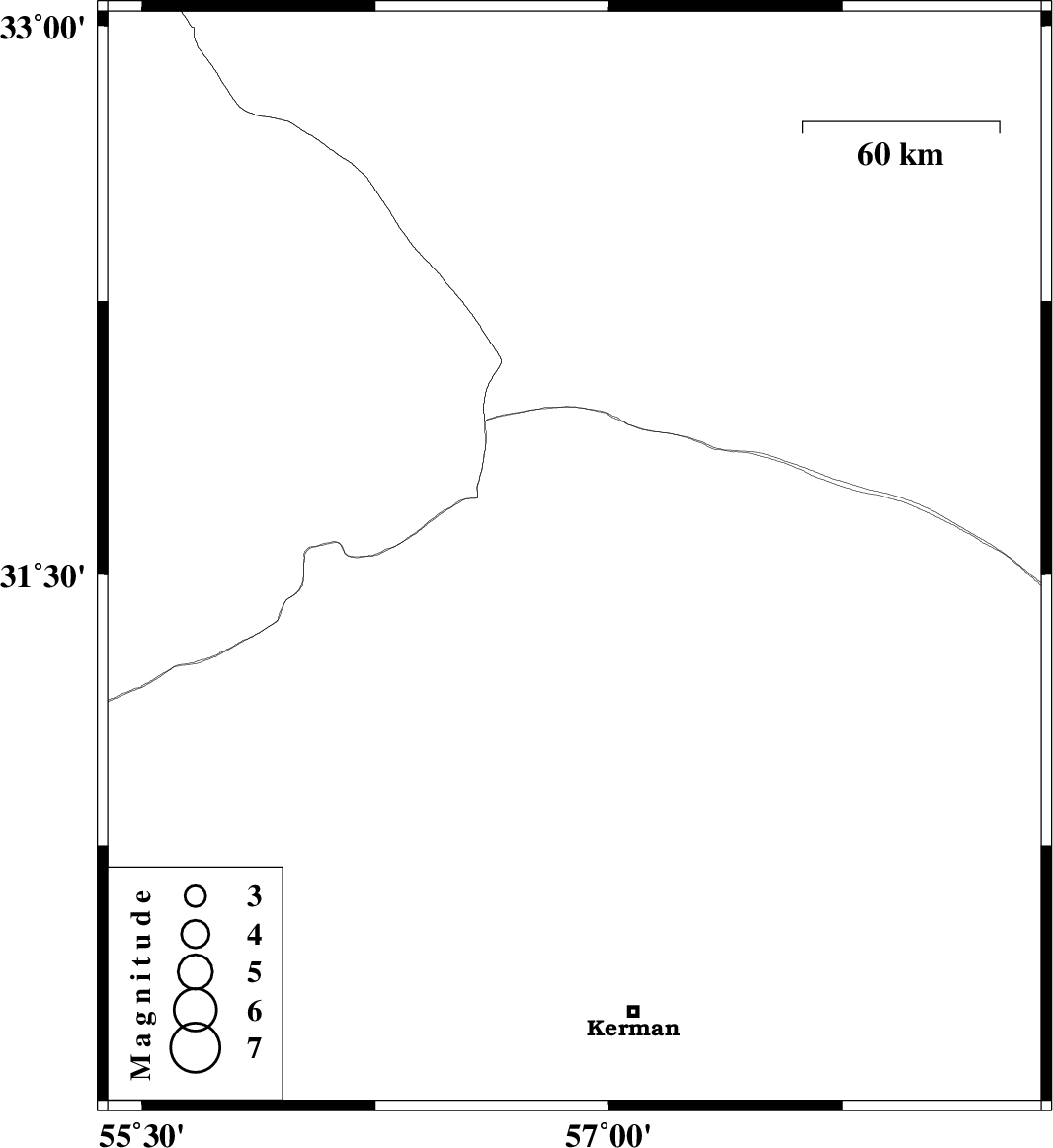 | 2009/08/09 | 16:22:59.7 | 20:52:59.7 | 31.54 | 56.89 | 18 | ML:3.3 | Kerman Province, 31 km North of Ravar |