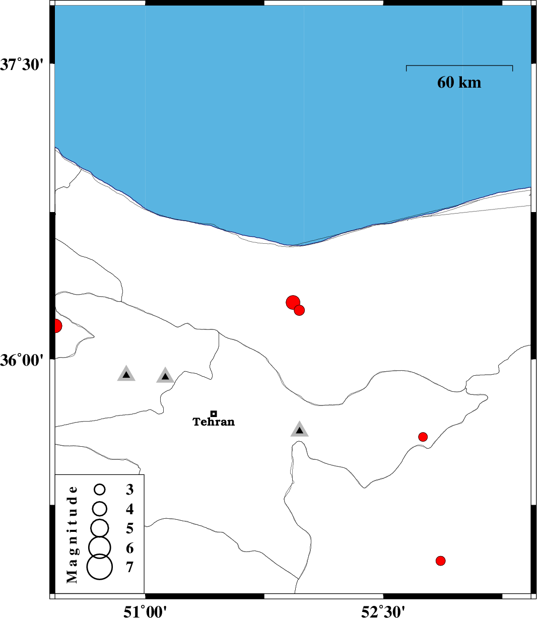| 2009/08/05 | 08:02:26.6 | 12:32:26.6 | 34.96 | 52.86 | 27 | ML:2.7 | Semnan Province, 55 km South-East of Garmsar | ||