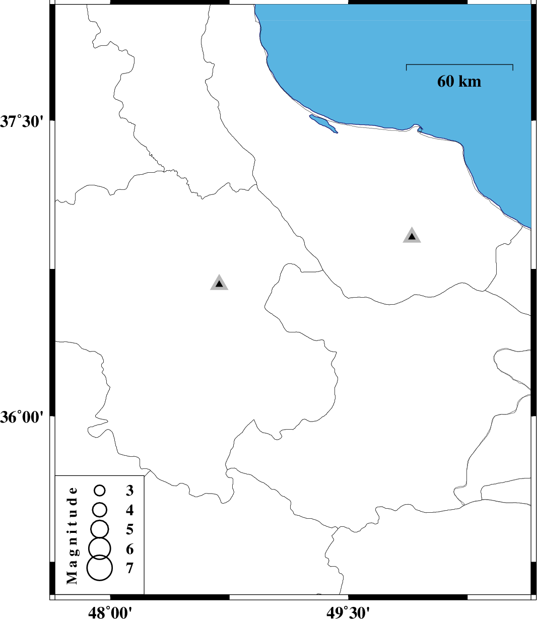 | 2009/08/15 | 18:37:22.7 | 23:07:22.7 | 36.58 | 49.15 | 14 | ML:3.2 | Ghazvin Province, 41 km North of Khoramdareh |