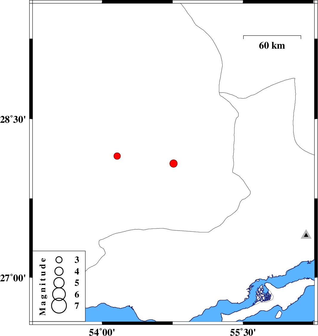| 2009/08/22 | 04:08:06.7 | 08:38:06.7 | 28.08 | 54.76 | 14 | ML:3.6 | Fars Province, 61 km North-East of Lar | ||