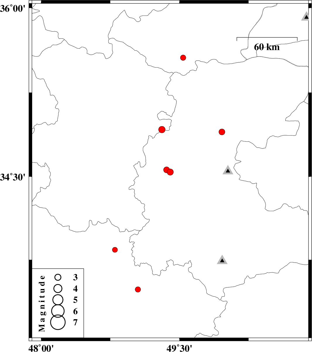 | 2009/07/30 | 13:43:18.8 | 18:13:18.8 | 33.84 | 48.8 | 14 | ML:2.5 | Lorestan Province, 8 km Borujerd | ||