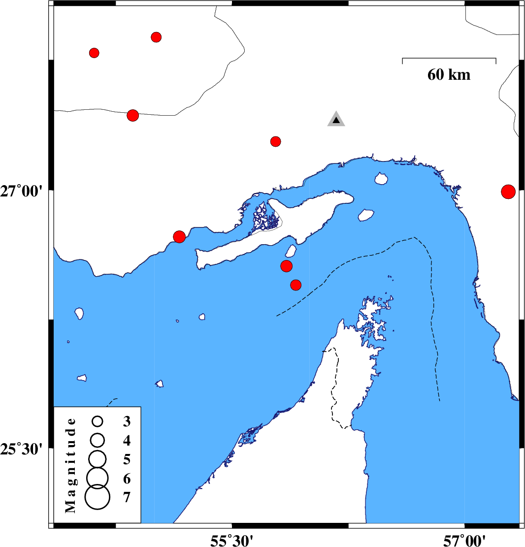 | 2009/08/11 | 05:42:44.7 | 10:12:44.7 | 26.73 | 55.16 | 44 | ML:3.5 | Hormozgan Province, 39 km North-East of Bandar-e lengeh | ||