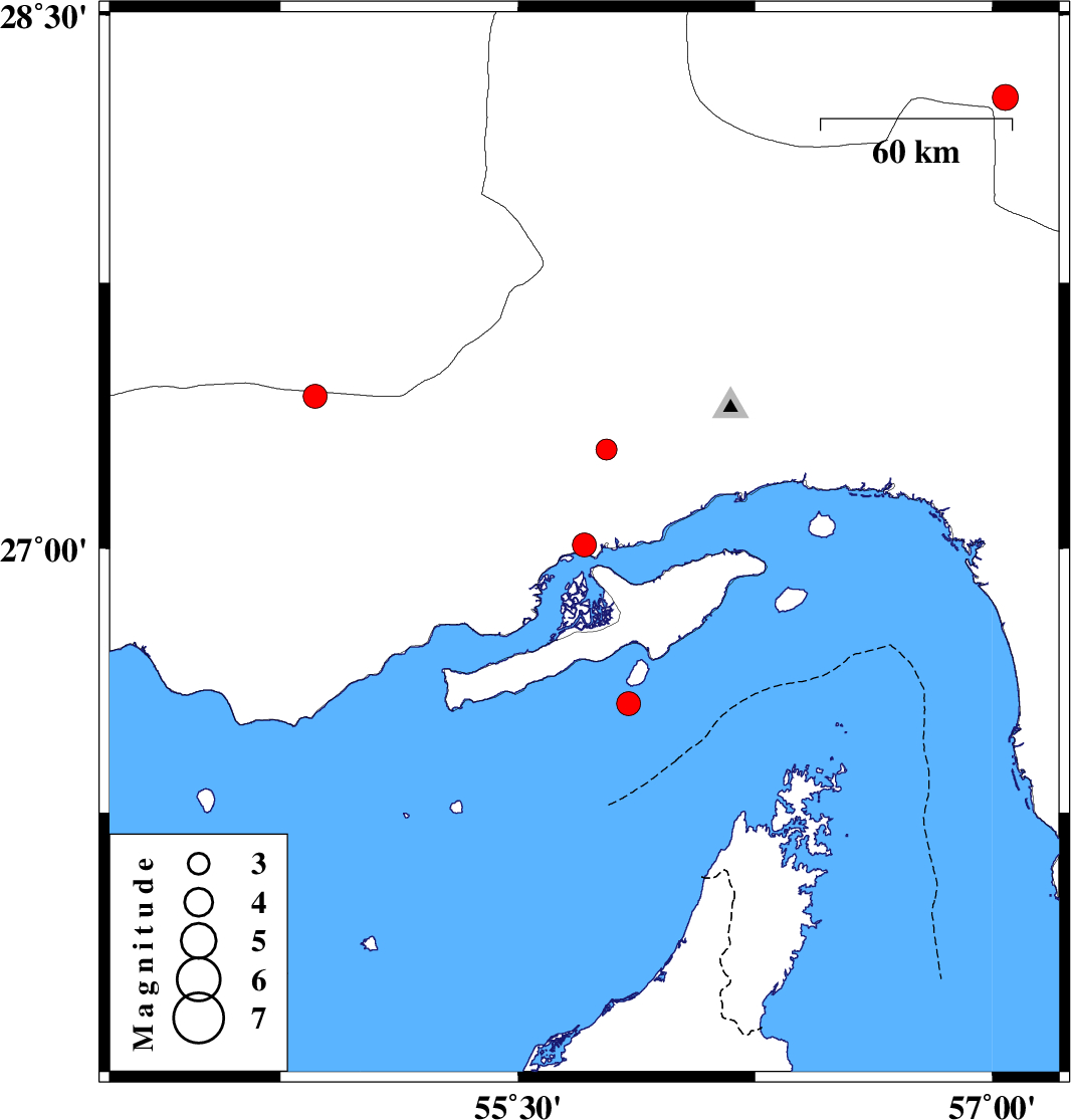 | 2009/08/29 | 09:37:21.0 | 14:07:21.0 | 27.28 | 55.78 | 14 | ML:3 | Hormozgan Province, 50 km West of Bandar-e abbas | ||