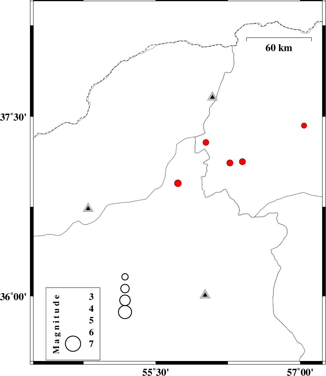 2009/08/20 23:09:38.1 03:39:38.1 36.9455.614 ML:2.9 Semnan Province, 37 km South-East of Minodasht