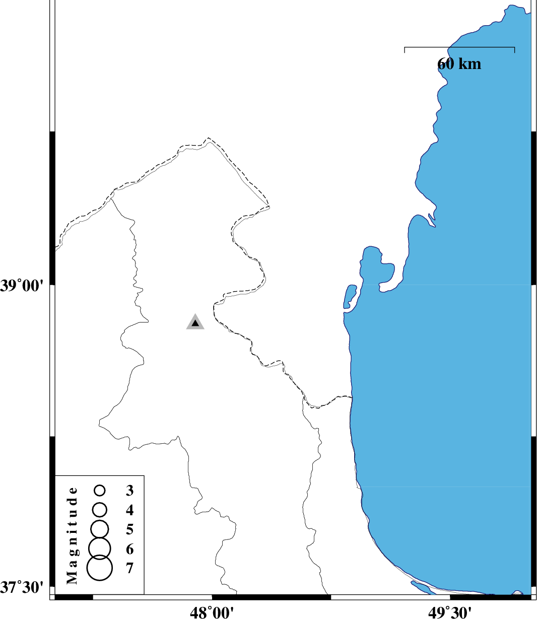 | 2009/09/03 | 03:56:13.9 | 08:26:13.9 | 38.96 | 48.51 | 14 | ML:2.8 | Azerbaijan, 37 km East of Germi |