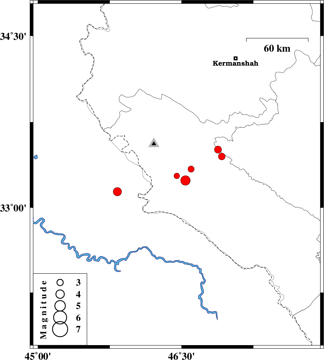 | 2009/08/30 | 22:16:38.0 | 02:46:38.0 | 33.51 | 46.88 | 14 | ML:3.4 | Ilam Province, 44 km South-East of Ilam | ||