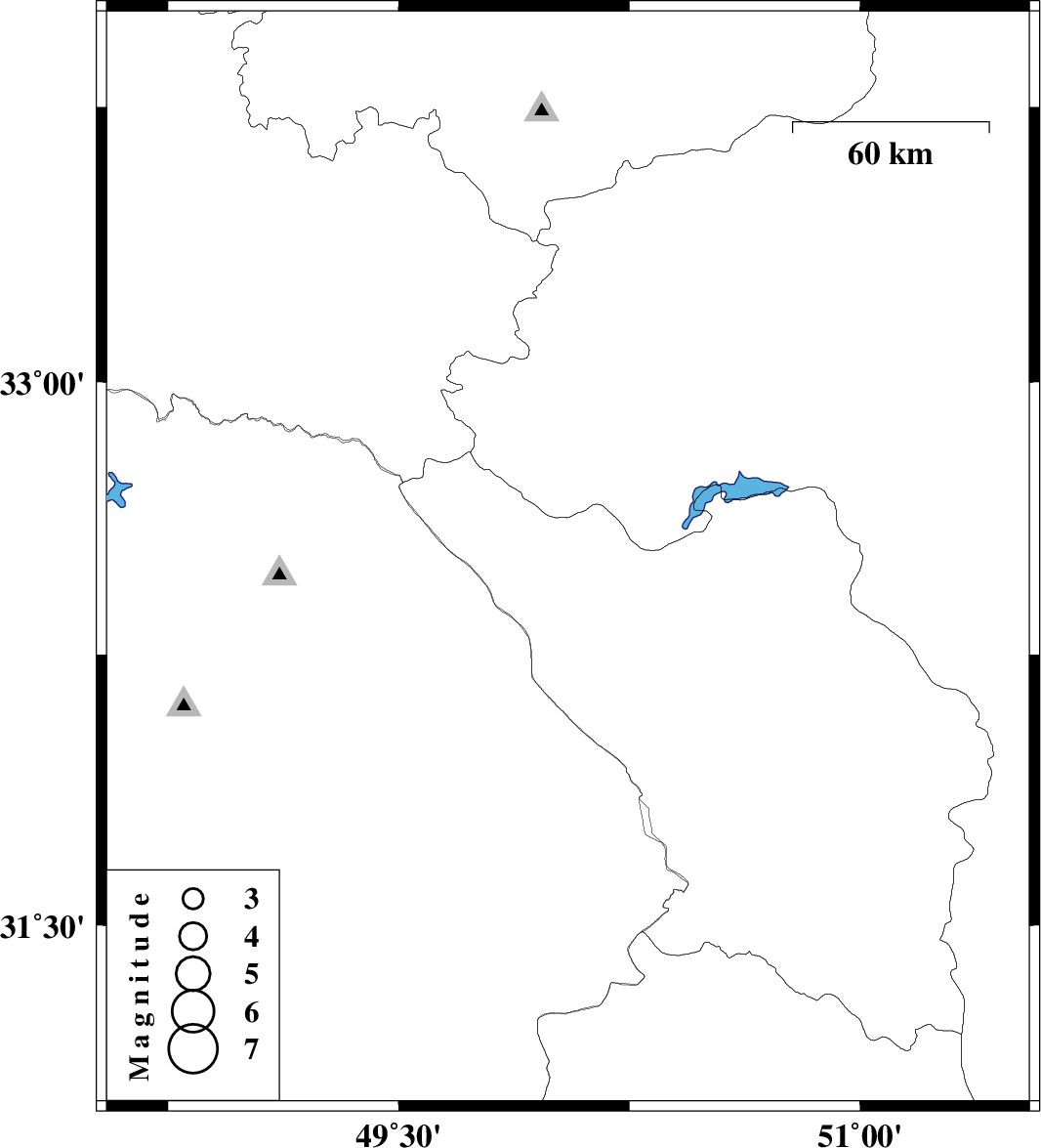 | 2009/09/07 | 18:53:17.6 | 23:23:17.6 | 32.51 | 50.05 | 18 | ML:3.1 | Chaharmahal Bakhtiari Province, 8 km Chelgard |
