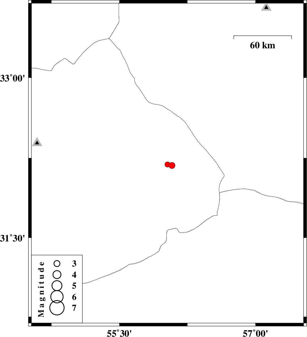 | 2009/09/13 | 08:25:13.2 | 12:55:13.2 | 32.19 | 56.03 | 14 | ML:2.7 | Yazd Province, 89 km North-East of Bafq |