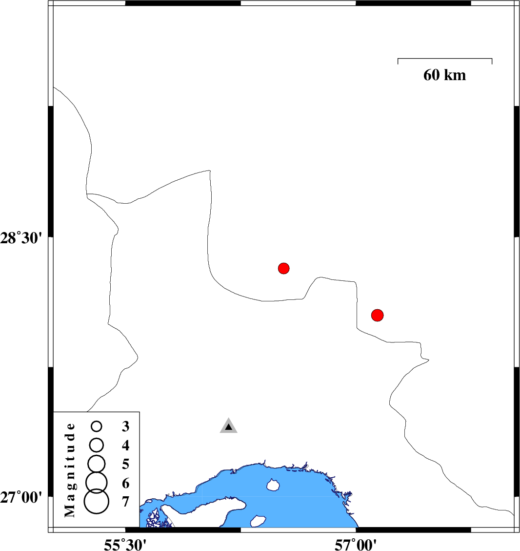 | 2009/09/15 | 14:44:10.4 | 19:14:10.4 | 28.05 | 57.14 | 27 | ML:3.5 | Kerman Province, 55 km West of Kahnuj |