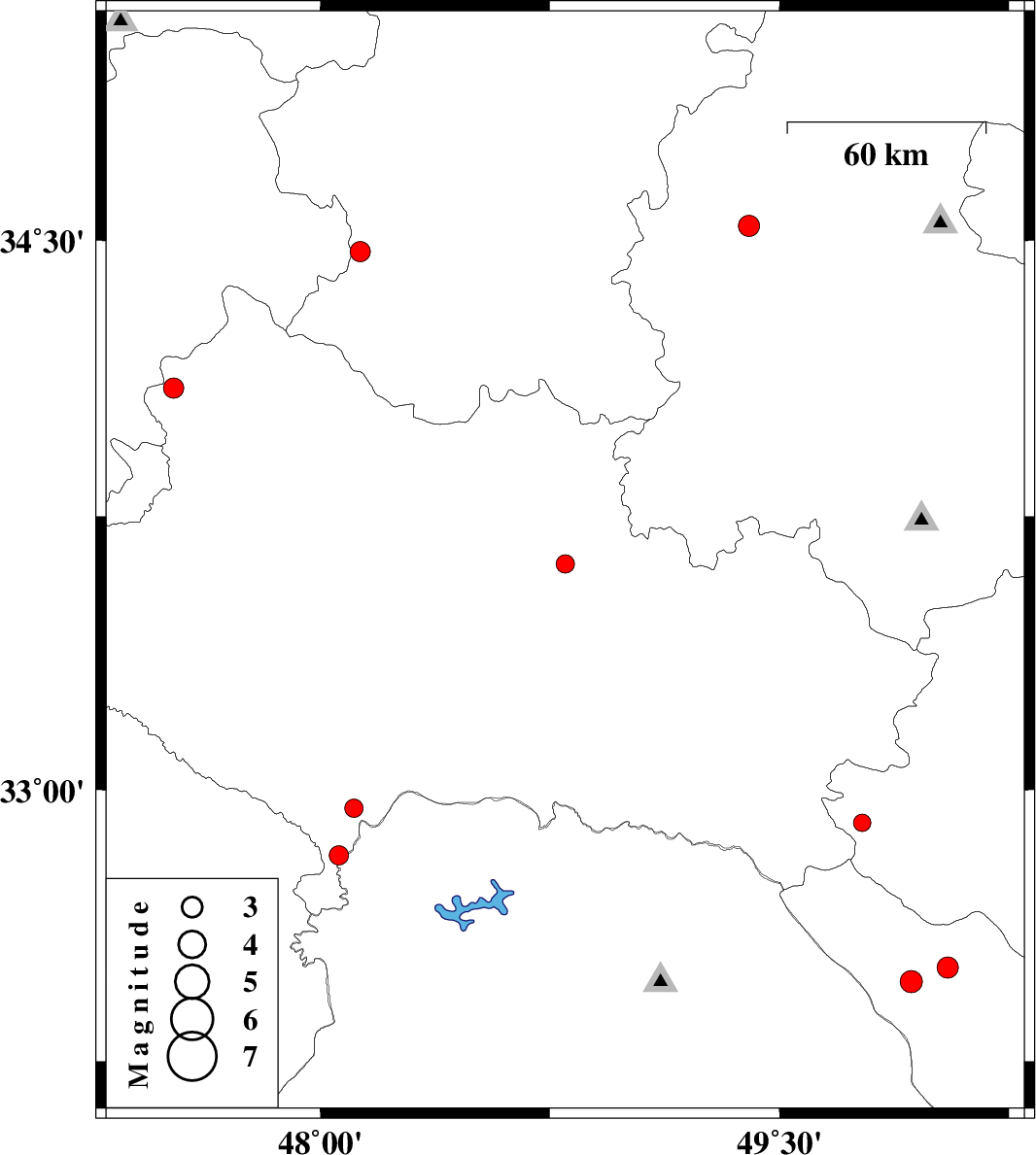 | 2009/09/19 | 13:31:05.3 | 18:01:05.3 | 33.62 | 48.8 | 15 | ML:2.7 | Lorestan Province, 31 km South of Borujerd | ||