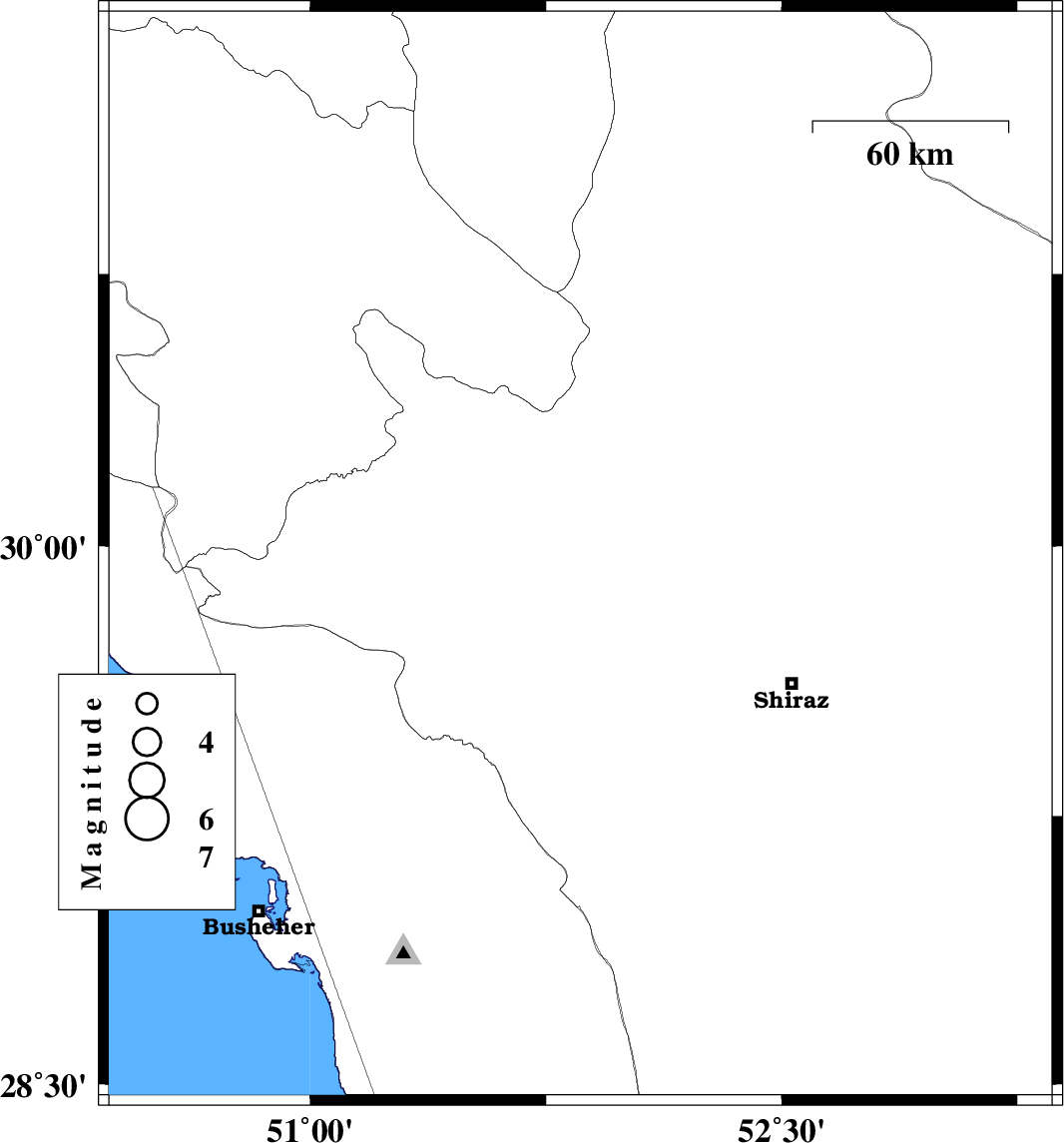 | 2009/09/22 | 06:33:42.9 | 10:03:42.9 | 29.45 | 52.02 | 15 | ML:3.2 | Fars Province, 40 km South-East of Kazerun |