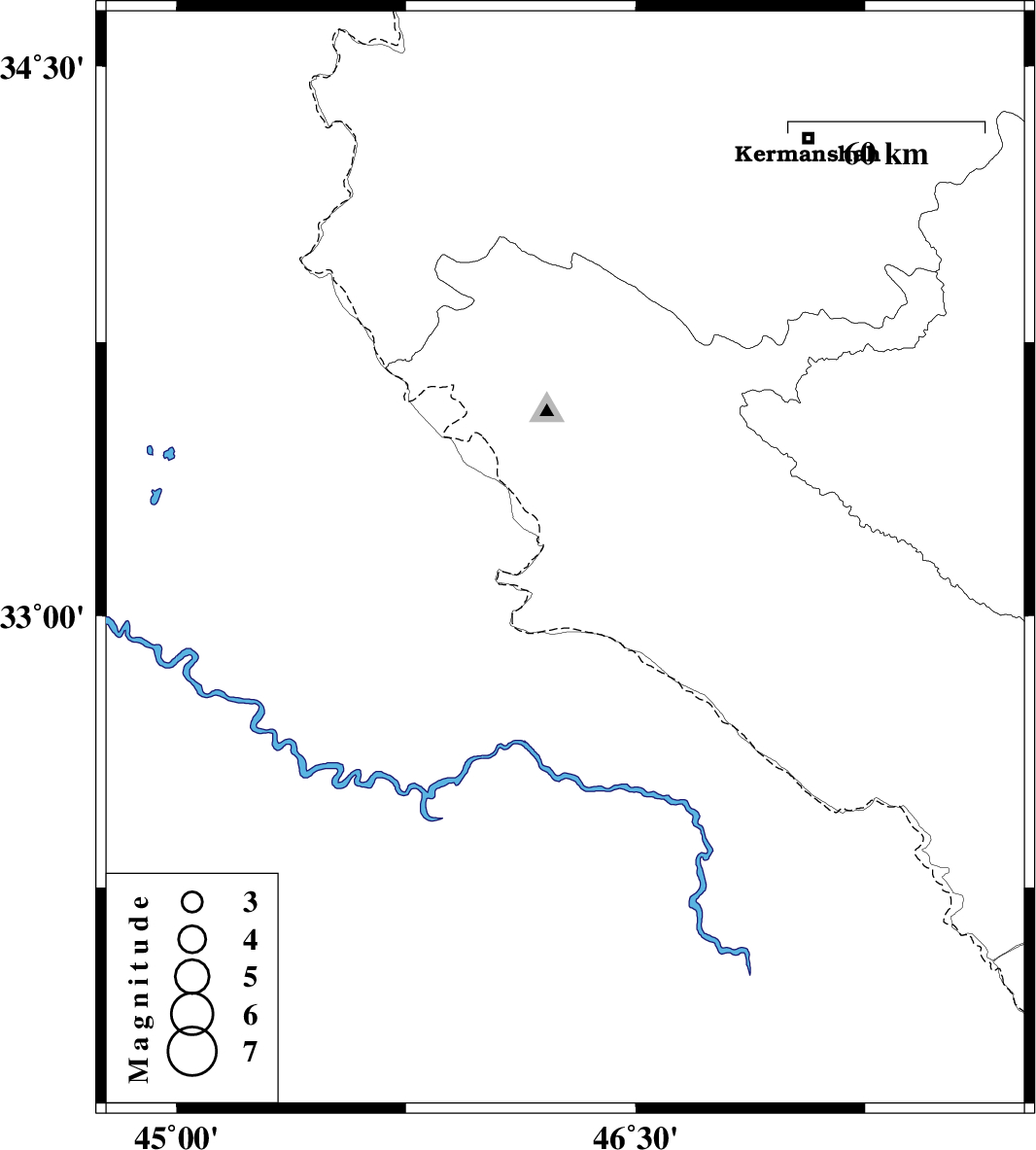 | 2009/09/25 | 06:10:02.6 | 09:40:02.6 | 33.15 | 46.27 | 14 | ML:3 | Ilam Province, 11 km East of Mehran |
