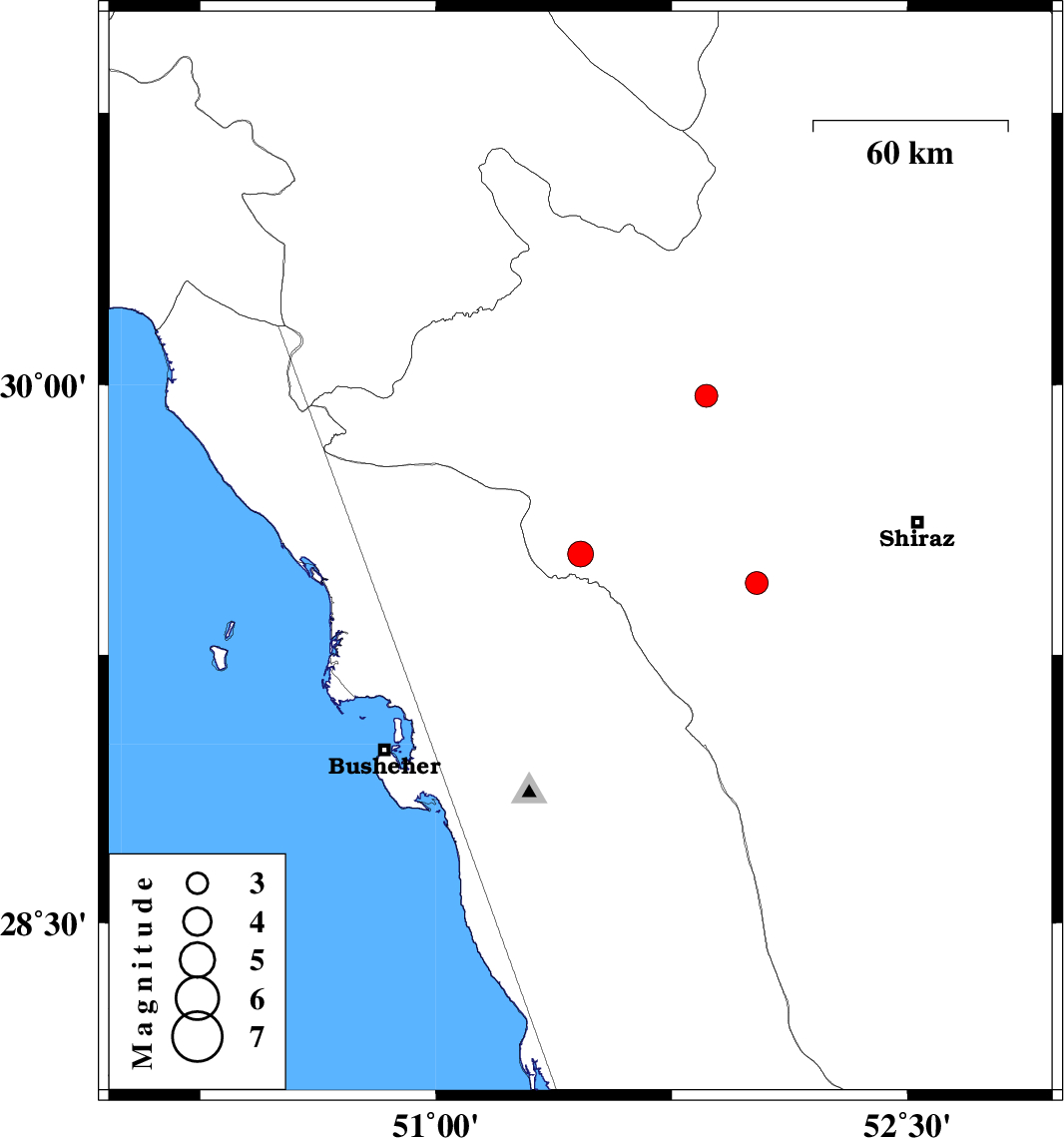 | 2009/09/22 | 06:33:42.9 | 10:03:42.9 | 29.45 | 52.02 | 15 | ML:3.2 | Fars Province, 40 km South-East of Kazerun |
